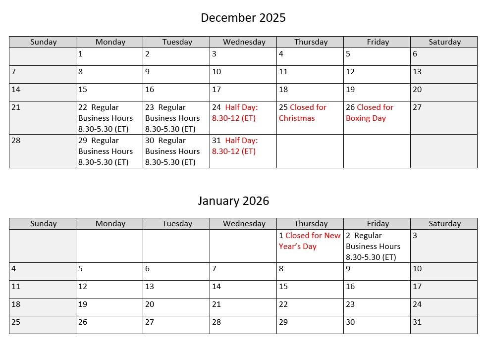 With the holidays right around the corner, we wanted to share our holiday schedule.